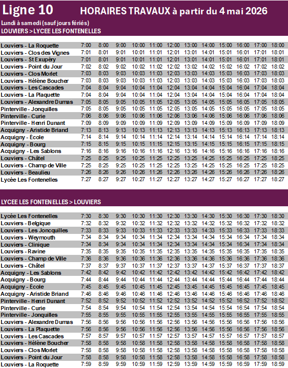 Horaire(s) de la ligne